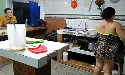 Amateur Cougar gets her big ass fucked in the kitchen by thick shaft