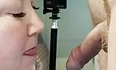 I suck my stepson's jizz-shotgun until he cums in my gullet