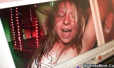 Ancient grannie with saggy knockers wants ALL of his young cummies