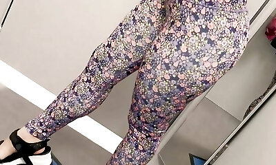 Fitting room, a slim beauty with an elastic ass arranged a fitting for sports leggings Anna Mole