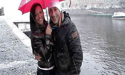 Hot fuckslut picked up on a rainy day and fucked in an anal 3 way