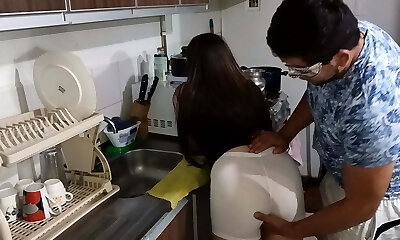 Hindo Latina Stepsister Pokes with her Cousin in the Kitchen Cum in Mouth and Eats Cum
