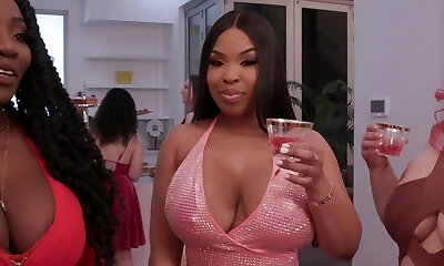 Randy plump ebony babes getting stiff man-meat to suck