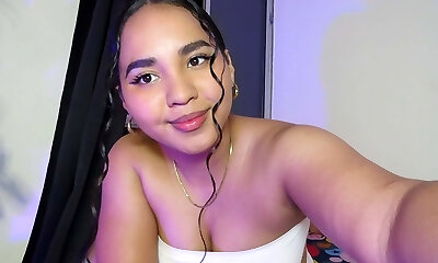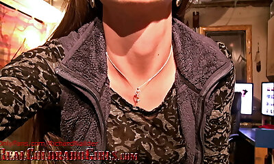 Wild lithe amateur dark-haired whore flashes her big booty during solo
