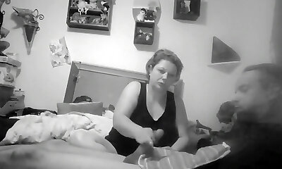 Son pleases mom with hand and cock