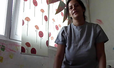Immense shy brunette girl with massive hairy pussy has missionary and cowgirl sex ending in a creampie on her bed