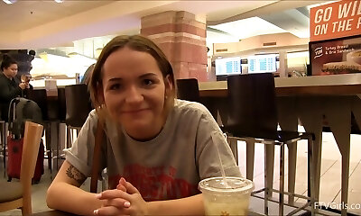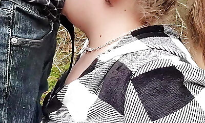 Cute plus-size in glasses deepthroat blowjob doggie cumshot on ass in public outdoor